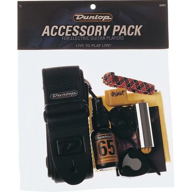 GA51 - набор аксессуаров для электрогитар от компании Dunlop, который станет отличным подарком для гитаристов. Он включает в себя три медиатора (Tortex толщиной 0.60 мм, нейлоновый медиатор толщиной 0.60 мм и Shell Classic среднего размера), чехол для медиаторов, эластичный каподастр, гитарный ремень, два держателя для ремня и хромированный гитарный слайдер. Так же в комплекте идет вертушка для намотки струн, которая поможет сэкономить время во время замены струн и полироль Formula №65 с хлопковой салфеткой для полировки.