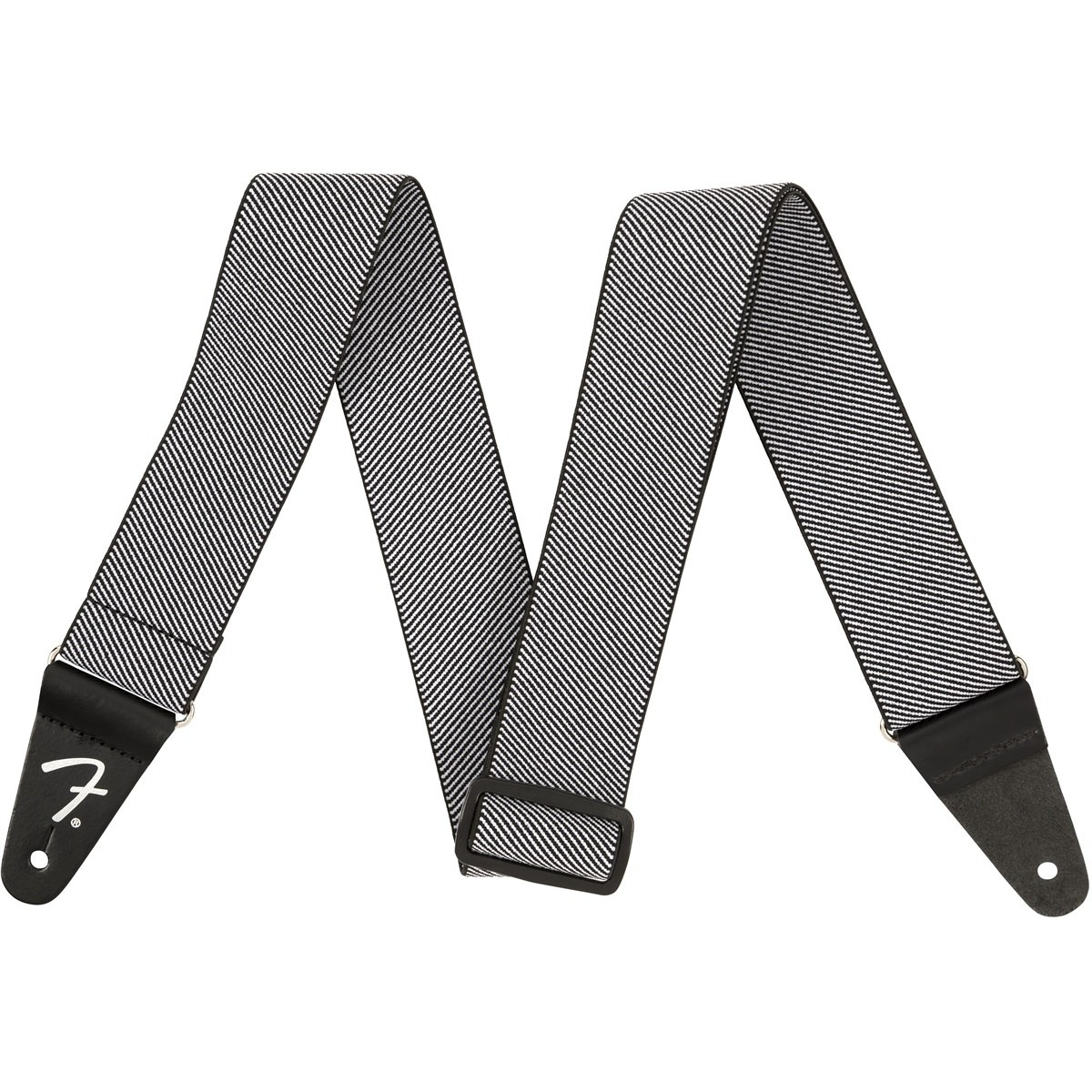 FENDER WEIGHLESS WHITE TWEED – стильный фирменный аксессуар от знаменитого американского гитарного бренда, эластичный гитарный ремень из линейки WeighLess™. Это современная реализация классического «твидового» дизайна Fender. Ремень производится в Канаде из высококачественных материалов. Он сочетает в себе мягкий полиэстер с добавлением спандекса и черную кожу с контрастным белым логотипом «F» в винтажном стиле. Ремень очень мягкий и удобный, материал слегка тянется, когда Вы двигаетесь с инструментом, это дает амортизирующий эффект и увеличивает удобство, позволяя не уставать на продолжительных выступлениях. Ширина ремня – 2 дюйма (5,1 см). Длина регулируется с помощью пряжки, от 44 дюймов (112 см) до 52,5 дюймов (133 см), он подойдет для большинства музыкантов. Модель выпускается в нескольких вариантах цветового исполнения. Представленный ремень – черно-белый.