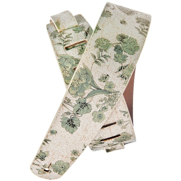 25DFL-01 Distressed Кожаный ремень для гитары, рисунок «White Flowers», Planet Waves.