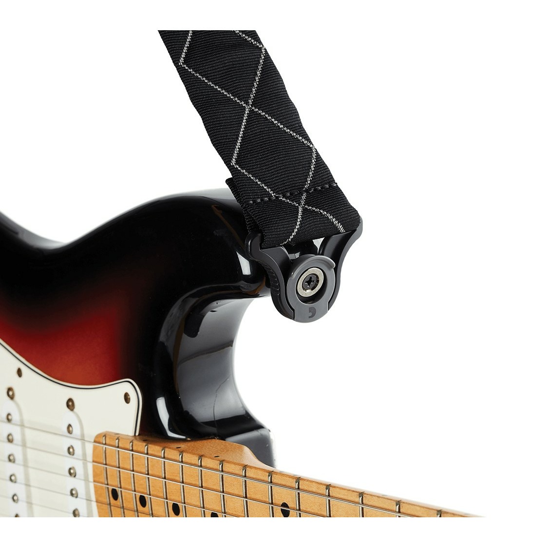 Он выполнен из очень прочного и долговечного нейлона, а также качественно прощит. У данной модели фирменные наконечники с системой Auto Lock, разработанные совместно со знаменитым гитарным мастером Недом Штайнбергером, которые гарантирую надежную фиксацию инструмента, характерную для стэплоков, без необходимости менять стандартные держатели ремня. Длина 50BAL02 легко регулируется в пределах от 89 до 151 сантиметра. Он без труда выдержит тяжелую гитару и обеспечивает высокий комфорт при исполнении в положении стоя.