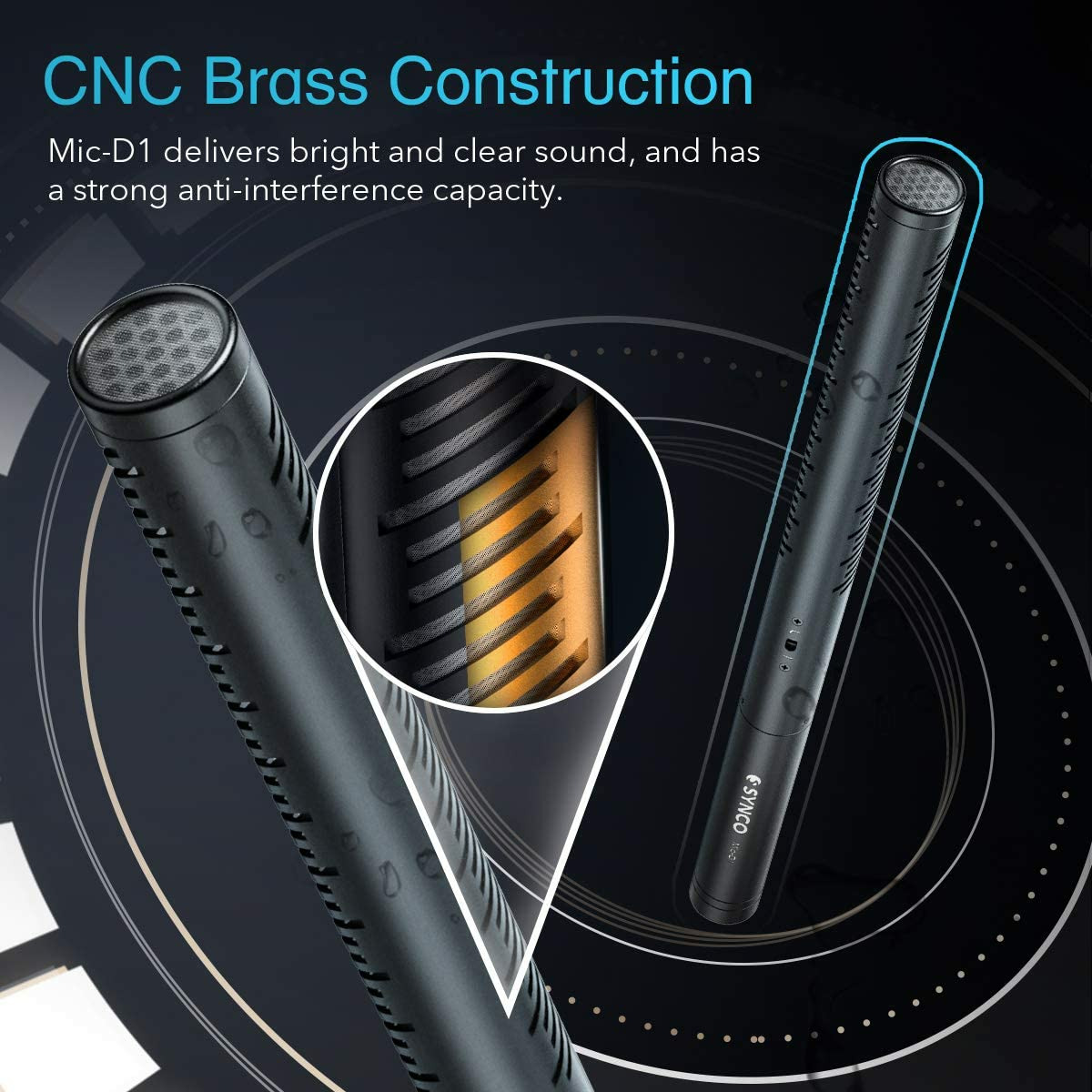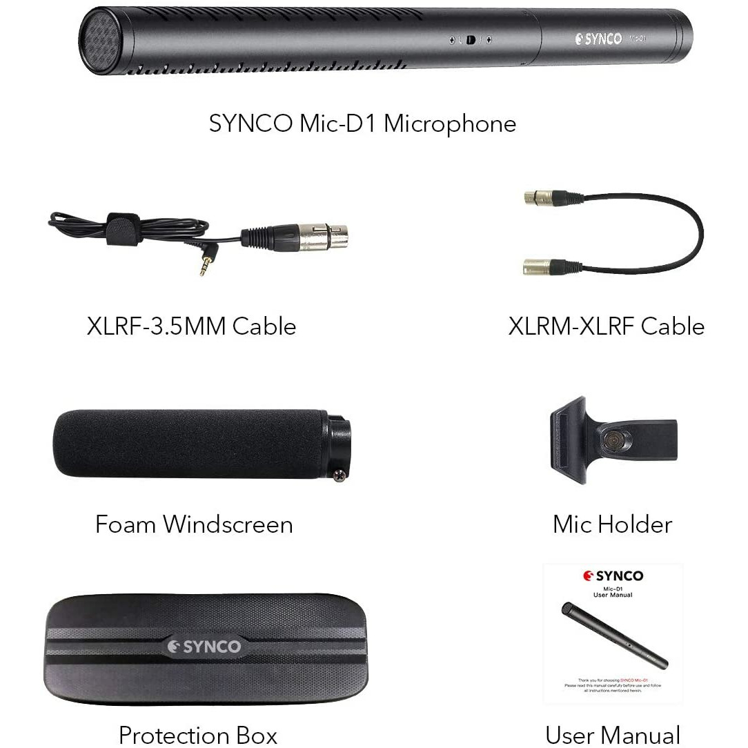Накамерный микрофон Synco Mic-D1 - это профессиональный гиперкардиоидный микрофон- шотган с соотношением сигнал / шум 78 дБ, металлической латунной конструкцией с ЧПУ и позолоченным разъемом XLR. Выбираемый фильтр верхних частот минимизирует нежелательные шумы ниже 180 Гц. Он подходит для большинства профессиональных видеокамер, микшерных пультов и записывающих устройств, которые обеспечивают фантомное питание 48 В, а также для тех, которые не имеют фантомного питания, таких как DSLR и компьютеры. Звук вещательного качества гарантирован как в студии, так и на улице.