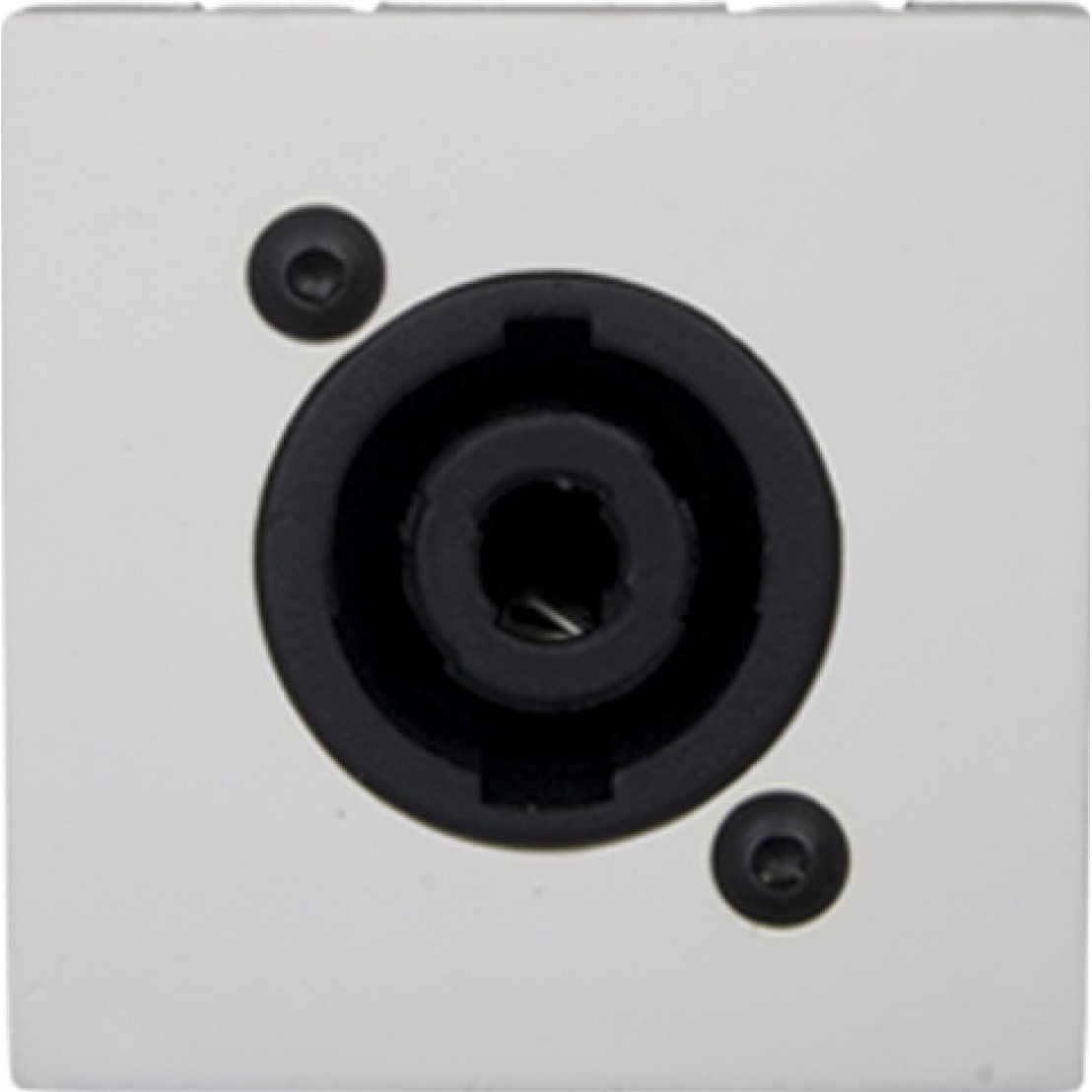 CP45SPES – модуль настенной панели с разъемом Speakon (вилка), с оборотной стороны расположен клеммный блок типа Phoenix. Стандарт Mosaic 45x45 для Legrand и Audac. Основание для крепежа и рамка поставляются отдельно.