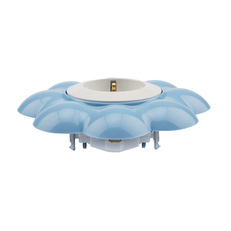 Розетка одноместная Kranz KR-78-0628 HAPPY Цветок скрытой установки, с заземлением и защитными шторками, белая/голубая