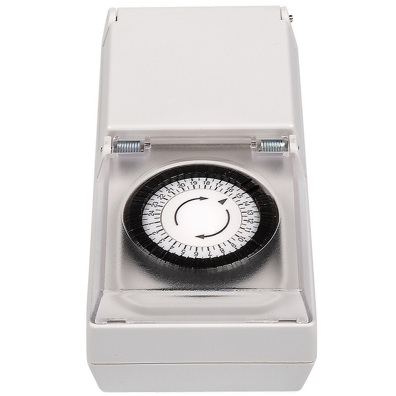 Розетка с таймером необходима для включения и выключения домашних электрических приборов в Ваше отсутствие. Задание программ осуществляется с помощью механического программного диска. Данная модель имеет повышенный класс пылевлагозащищенности IP-44 Характеристики: • Тип таймера - суточный, механический • Шаг таймера - 30 минут • Максимальная нагрузка - 3500 ВТ • Ток - 16А • Степень защиты - IP44 • Напряжение - 230 В • Частота - 50 Гц • Диапазон температур -10 + 40