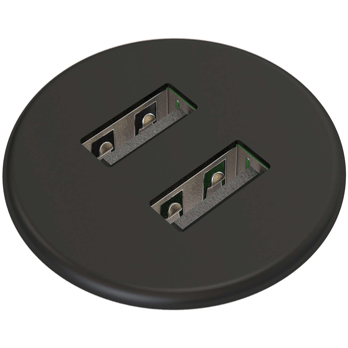 935-PM30 – встраиваемая зарядная станция Powerdot MICRO с 2 разъемами USB (5 В, 2 А). Круглая лицевая панель. Максимальная толщина столешницы: 26 мм. Сила тока: 2 А суммарно. Длина кабеля питания: 1,5 м. Цвет черный.