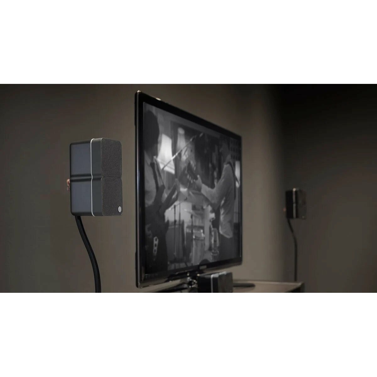 Аккуратный компактный корпус-куб имеет скругленные ребра и устойчивое к царапинам глянцевое лаковое покрытие. Фронтальную панель кабинета занимает 6,5-дюймовый вуфер, оснащенный коническим диффузором и защищенный съемным грилем. Материалом для диффузора служит высококачественный алюминий, который применяется в аэрокосмической промышленности. Такой НЧ-драйвер обеспечивает отличный панч и мощную звуковую подачу. Для усиления отдачи по басу и уменьшения искажений в боковые стенки кабинета встроены вспомогательные пассивные 6,5-дюймовые радиаторы ABR (Auxiliary Bass Radiator). Такая конструкция позволяет сделать кабинет более компактным, не теряя при этом в производительности.