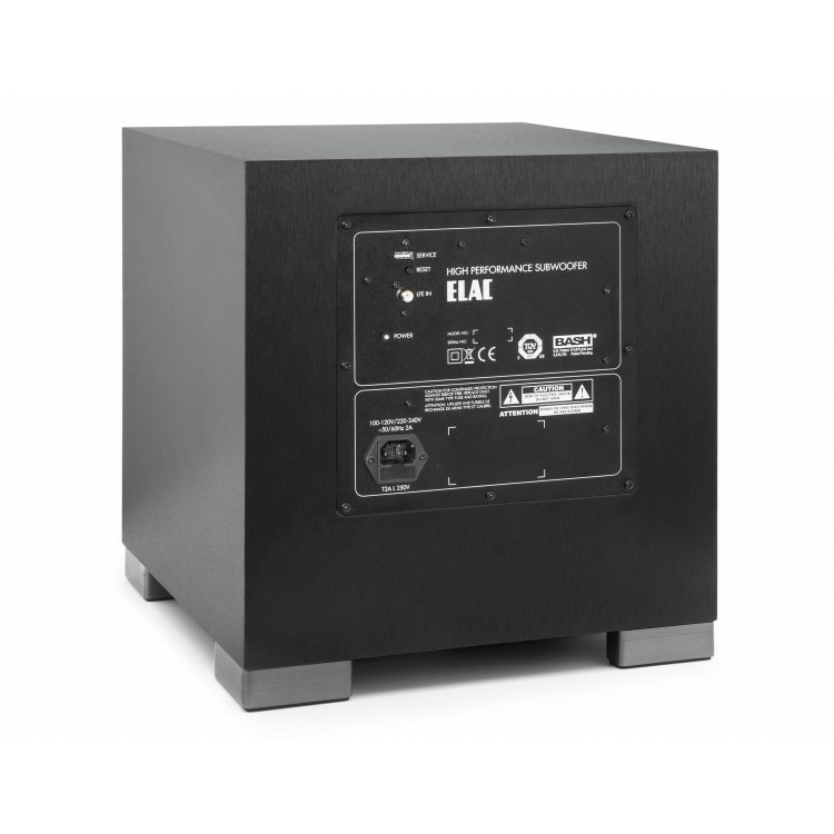 В сабвуфере установлен запатентованный усилитель BASH, отличающийся высокой эффективность при значительной выходной мощности и хорошем звучании. ELAC Debut S10EQ оснащен усилителем BASHмощностью 200 Вт (RMS), чего будет вполне достаточно для озвучивания комнат средних размеров. Аппарат оснащен системой автоматического включения и отключения, срабатывающей при появлении и исчезновении сигнала на входе соответственно. Для подключения ELAC Debut S10EQ предназначен RCA-разъем LFE.