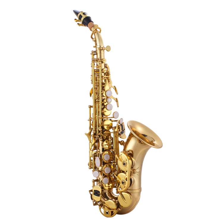 Саксофон сопрано, корпус изогнутый, клапан верхнего F#, покрытие золотой лак