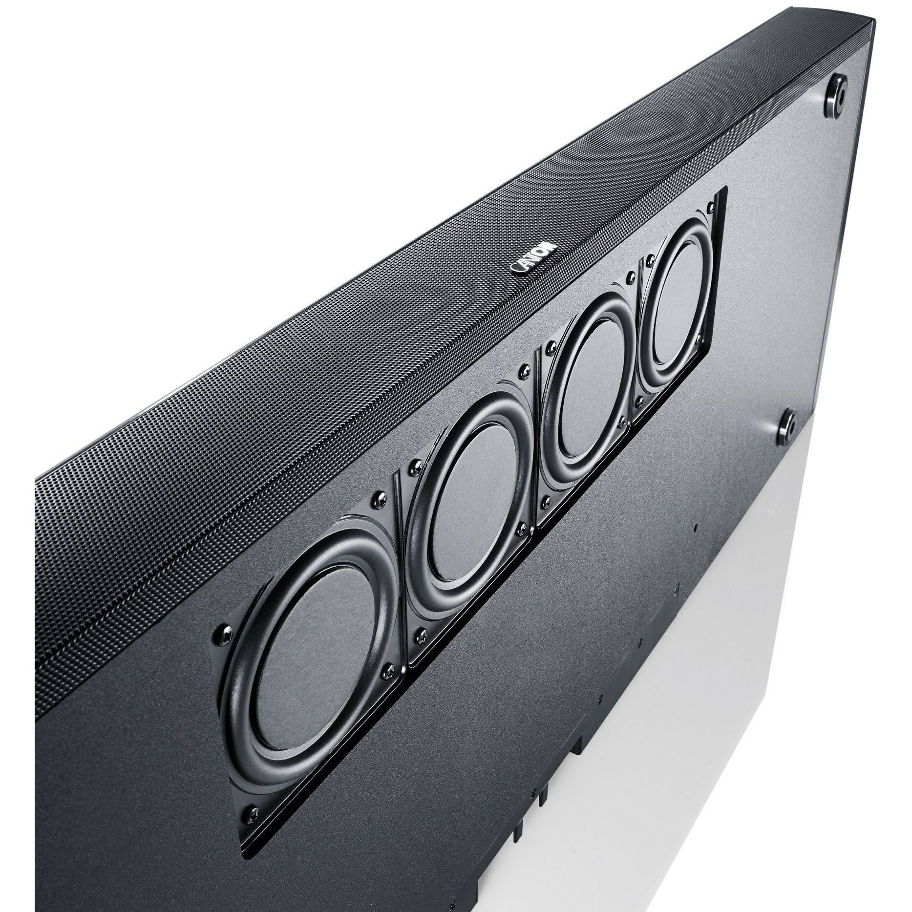 Четыре тонких 100-миллиметровых низкочастотных динамика работают в качестве сабвуфера в нижней части корпуса. Для обеспечения стереозвука и объемного звучания предусмотрены два 50-мм среднечастотных динамика и 19-мм твитер в горизонтальном расположении D'Appolito, расположенные слева и справа на передней панели.
