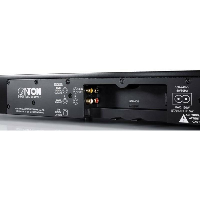 Canton DM 101 переходит в режим ожидания примерно через 30 секунд.Canton DM 101 несет на борту базовые декодеры Dolby Digital и DTS, а акустически она сконфигурирована как трифоник. Если мощности или глубины баса встроенного сабвуфера будет не хватать, можно подключить внешний сабвуфер с помощью низкоуровневого выхода. Коммутация с источником сигнала организована предельно просто: аналоговые RCA, оптический или коаксиальный входы.