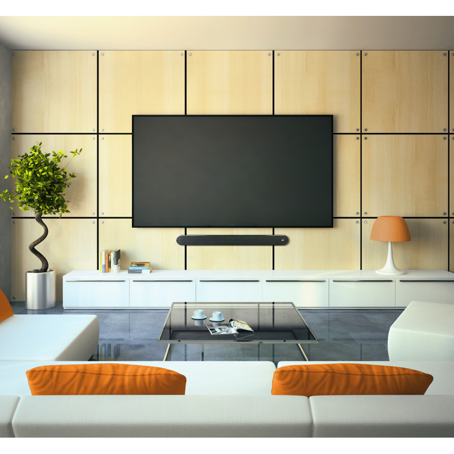 В саундбаре трудятся четыре 2,5-дюймовых широкополосника, басить которым помогают фазоинверторы. Сабвуфера в комплекте не предусмотрено, поэтому динамики отыгрывают весь частотный диапазон, включая низкие частоты. По мнению разработчиков, такой конструкции достаточно для того, чтобы заполнить комнату звуком.За подстройку громкости голосов отвечает фирменная технология Voice Adjust. Дополнительные настройки включают в себя три пресета эквалайзера — Movie, Music и Night. Первые два меняют звучание в соответствии с типом контента, последний же регулирует громкость так, чтобы не разбудить соседей. Подключить устройство к источнику можно с помощью оптического кабеля или Bluetooth.