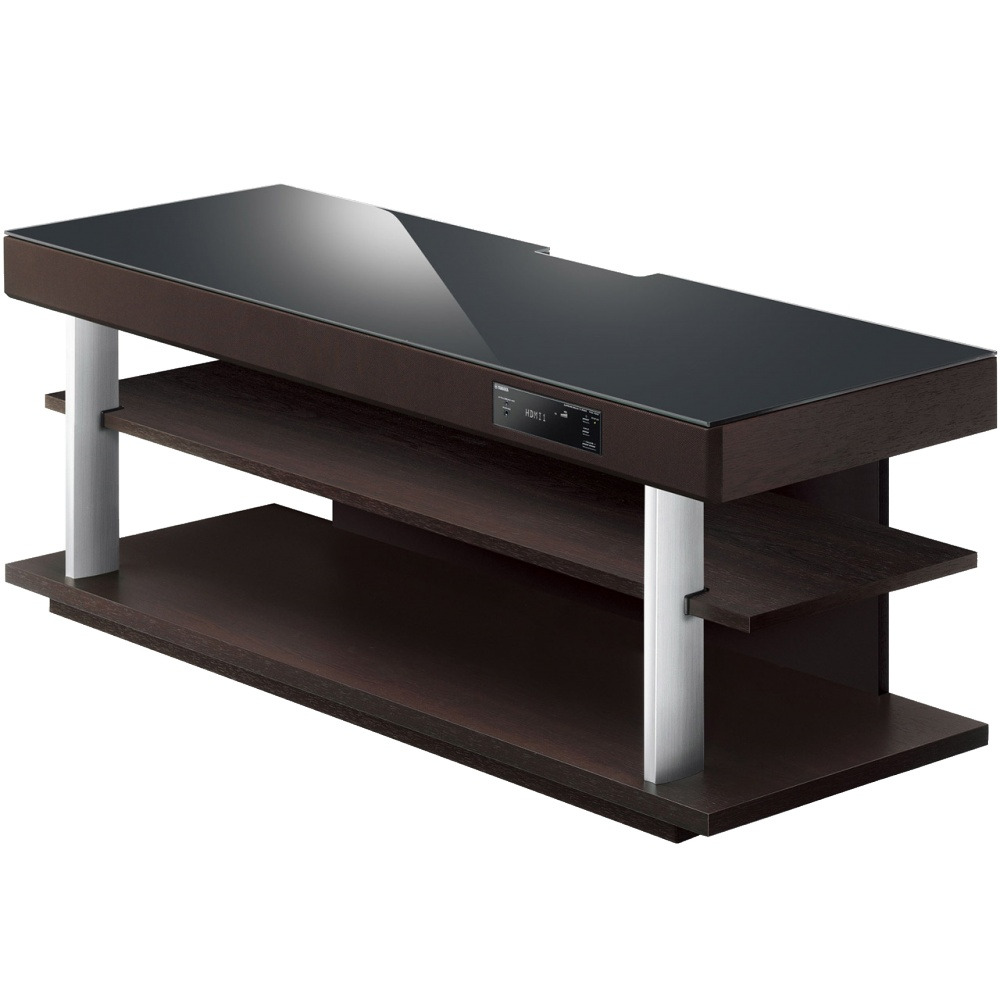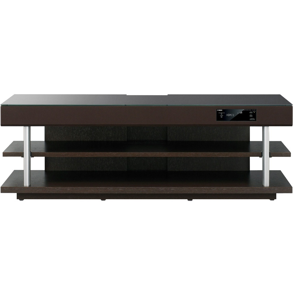 Благодаря тому, что модуль пространственного звучания расположен в верхней секции и подпирается двумя алюминиевыми колоннами, YRS-1500 имеет открытую конструкцию, напоминающую рояль и содержащую массу свободного пространства для размещения других пользовательских компонентов. Кроме того, устранена проблема выбора места размещения сабвуфера, поскольку мощный 100-ваттный громкоговоритель уже встроен внутри. Средняя полка регулируется по высоте. Напольная листовая подложка позволяет легко перемещать комплект в случае необходимости. При помощи отдельно приобретенного кронштейна можно установить телевизор вровень со стеной, чтобы система занимала меньше места.