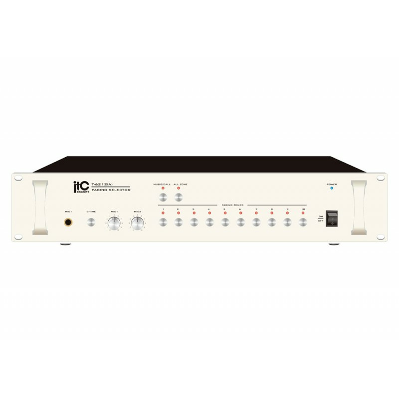 Автоматический селектор зон ITC ESCORT T-6212A входит в состав системы оповещения ITC-ESCORT и используется для построения систем автоматического аварийного оповещения и музыкальной трансляции на базе дополнительного оборудования. Данный блок одновременно работает как предварительный усилитель, и как пейджинговый селектор зон и как коммутатор.