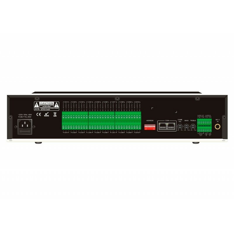 Функции ITC ESCORT T-6212A: предварительный усилитель (4 входа, 3 приоритета); пейджинговый селектор зон (10 зон/расширение до 300 зон); коммутатор (10 музыкальный/10аварийных усилителей); музыкальный режим; дистанционное управление; аварийный режим; управление по RS-422.