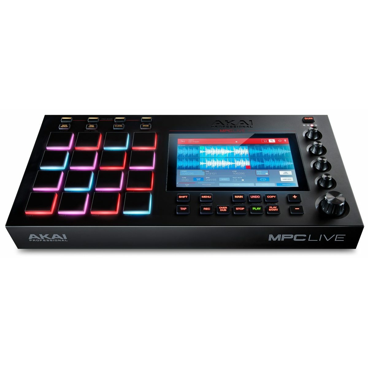 AKAI PRO MPC LIVE - многофункциональная рабочая станция серии MPC, с полностью автономным режимом работы, уже успевшая стать легендарной. В дословном переводе с английского «музыкальная коробка» - грувбокс, как и компактные синтезаторы, прежде всего – интерактивный электронный музыкальный инструмент для исполнения и создания любых видов и жанров живой электронной музыки. AKAI PRO MPC LIVE поддерживает технологию многоядерной обработки, может работать на батарее или литиево-ионном аккумуляторе.