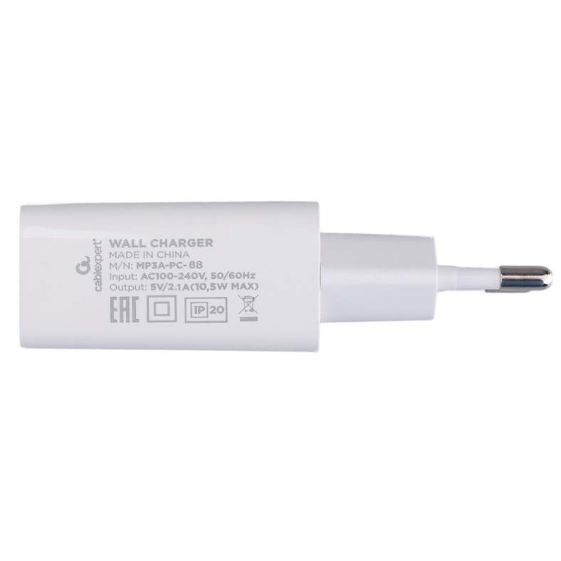 Зарядное устройство Cablexpert MP3A-PC-68, 10.5Вт, 2.1А, 1хUSB, белый, пакет