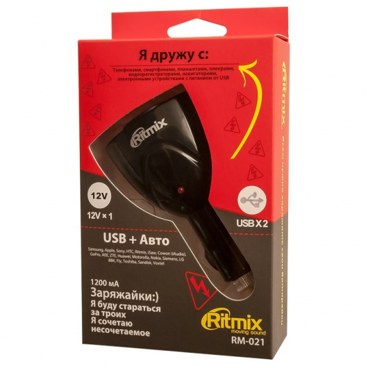 RM-021 совместим с электроникой широкого спектра применения: MP3-плеерами, РМР, PDA, смартфонами, цифровыми камерами, автомобильными видеорегистраторами и т.д. Устройство оснащено индикатором зарядки. Для предотвращения попадания пыли в прикуриватель RM-021 используется пластиковая крышка (в комплекте).