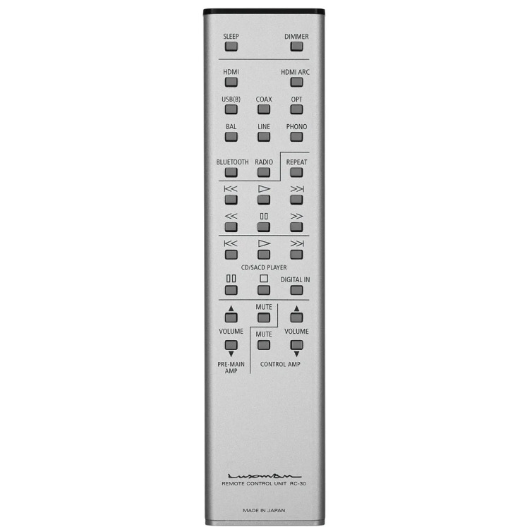 «LUXMAN Stream» — это бесплатное приложение для управления, предназначенное исключительно для NT-07, которое позволяет управлять множеством функций на сложном экране. Для каждого смартфона и планшета предусмотрен выделенный интерфейс, позволяющий выбирать источники звука, создавать списки воспроизведения и настраивать различные параметры устройства. В комплект также входит алюминиевый инфракрасный пульт дистанционного управления, который позволяет выполнять основные операции без запуска приложения. Вы также можете управлять воспроизведением проигрывателей дисков LUXMAN и громкостью встроенного усилителя. Он также оснащен терминалами ввода/вывода управления, которые связывают операции дистанционного управления между совместимыми устройствами.Входные/выходные разъемы HDMI также позволяют импортировать цифровой звук из видеоисточников