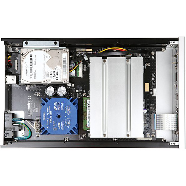 Для хранения аудио-библиотеки на борту Aurender N100H 2Tb имеется один HDD объемом в 2 Тб, а роль буфера берет на себя твердотельный накопитель SSD в 120 Гб. Все аудиофайлы перед проигрыванием попадают в буфер для кэширования, что позволяет избавиться от задержек при воспроизведении. Это особенно актуально при работе с внешними накопителями или сетевыми ресурсами. После кэширования встроенный хард-диск проигрывателя автоматически переводится в спящий режим, что дает возможность увеличить его срок службы, а также избавиться от акустического и электрического шума, связанного с его работой.