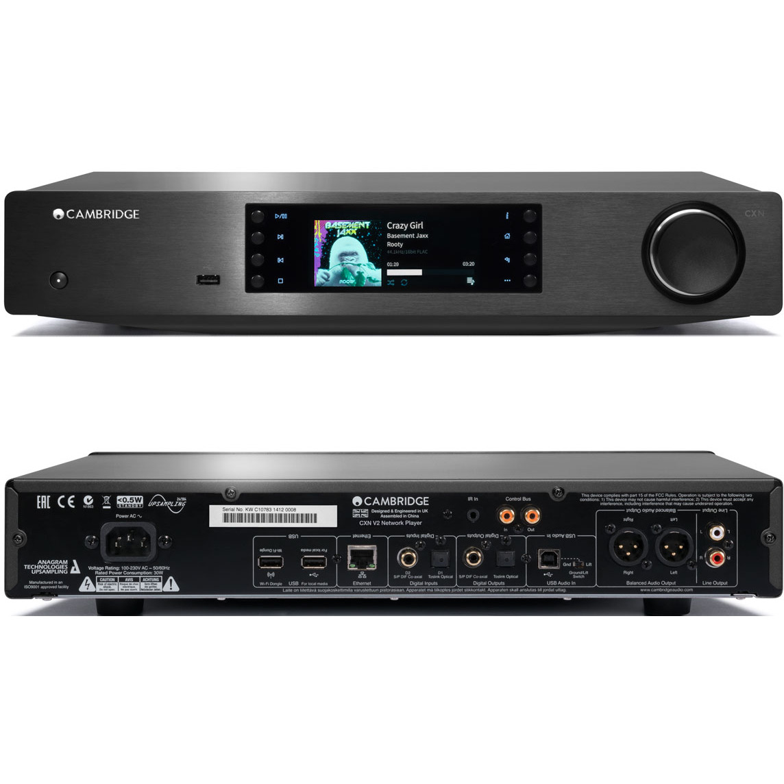 Проигрыватель Cambridge Audio CXN v2 поддерживает воспроизведение Hi-Res-файлов по локальной сети через Wi-Fi или LAN, а также с USB-накопителей. Имеется встроенный доступ к онлайн-сервису Spotify Connect и к огромному количеству веб-станций. Доступна функция AirPlay, а для реализации Bluetooth-подключения с поддержкой aptX-кодека можно установить USB-донгл BT100 (опция). Свежая версия встроенного ПО добавляет поддержку сервиса Tidal, протокола Google Cast (известного также как Chromecast Built-in) и тегов APEv2.