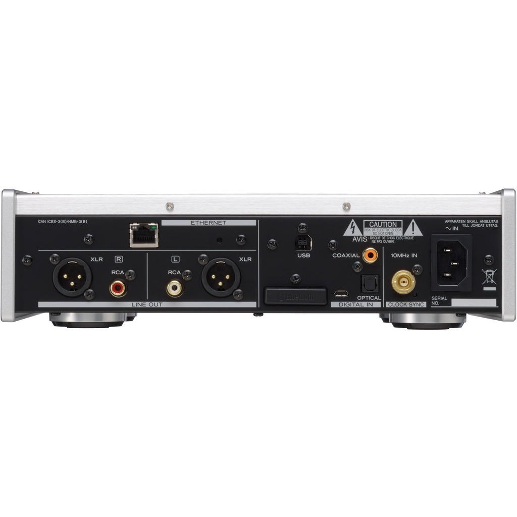При LAN-подключении к домашней сети и по USB (на фронтальной панели) доступны форматы PCM до 24 бит/192 кГц и DSD512. Поддерживаются веб-сервисы TIDAL и Qobuz, имеется сертификация Roon Ready. Проигрыватель TEAC NT-505 понимает MQA-декодирование, используемое для сжатой передачи Hi-Res-форматов, что актуально при прослушивании потоковых сервисов типа TIDAL. Модель оснащена Bluetooth с поддержкой кодеков LDAC и aptX-HD, обеспечивающих качество звучания, близкое к HD-форматам.