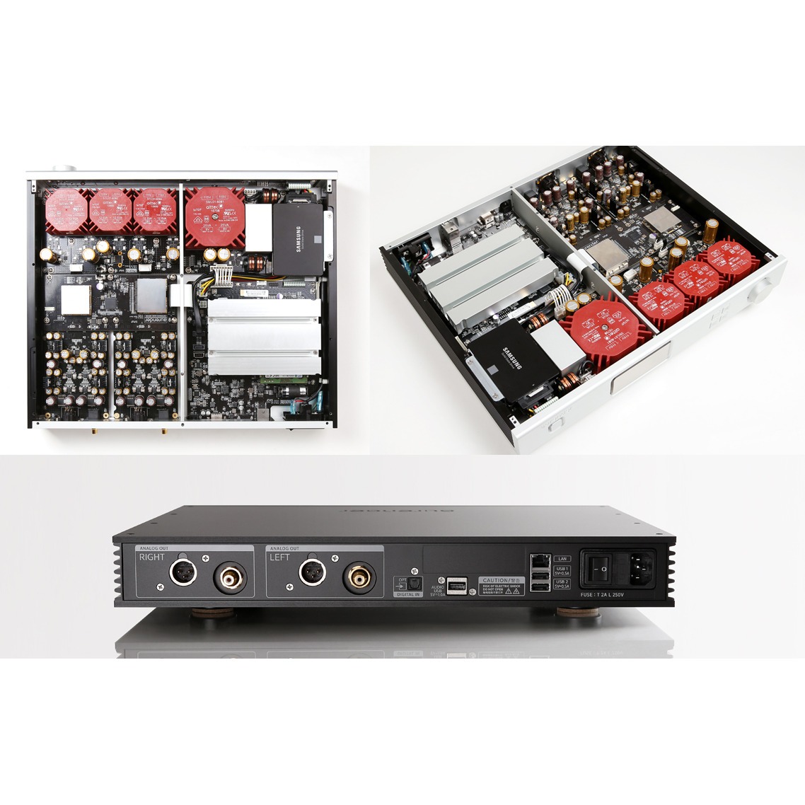 На каждый канал устройства приходится по одному высококлассному чипу-конвертеру AK4490 (32 бит/768 кГц). В конструкции используется прецизионная система с высокоточным генератором тактовых импульсов, которая базируется на программируемых вентильных матрицах FPGA. В итоге значительно улучшается качество передачи цифровых данных и обеспечивается рекордно низкий уровень джиттера в 100 фемтосекунд.