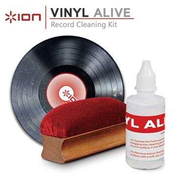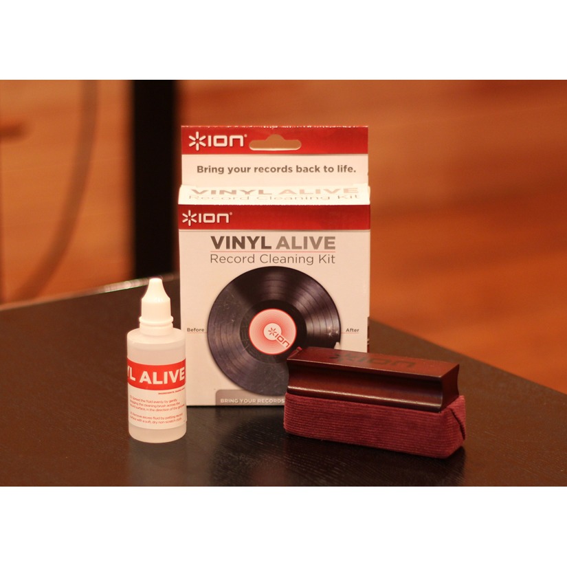 ION VINYL ALIVE™ – набор по уходу за виниловыми пластинками. Позволяет вернуть к жизни даже сильно загрязненную пластинку. Чистит бережно и быстро. Для наилучшего качества звука ваша пластинка должна быть чистой. ION VINYL ALIVE™ представляет собой новейшее средство по уходу за виниловыми пластинками и позволяет легко удалять пыль и другие загрязнения. В набор входят вельветовая подушечка с удобной деревянной ручкой и специальная чистящая жидкость.