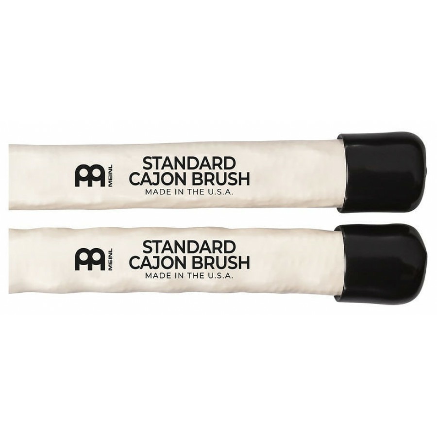 SB305 – щетки для кахона от немецкой компании Meinl. Прутки щеток выполнена из толстого волнистого полимера черного цвета, которые обернуты в гладкую рукоятку белого цвета. Для регулировки звучания предусмотрено два специальных кольца. Благодаря мягкому полимерному материалу эти щетки безопасны для ударной поверхности кахона и обеспечивают плотное звучание в низкочастотном диапазоне и отчетливые верха. Длина щеток 14 5/16 (36.3 см.), а диаметр рукоятки – 0.865" (2.2 см.).