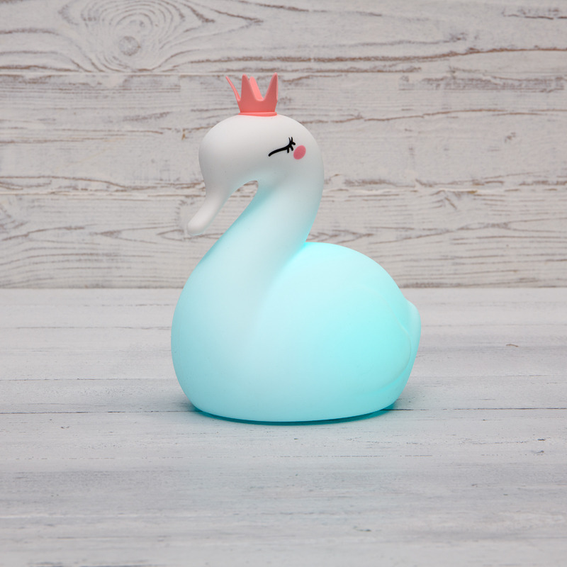 Силиконовый ночник «Лебедь» выполнен из мягкого материала, приятного на ощупь. Забавный персонаж придется по душе каждому ребенку, станет его лучшим другом, который поможет быстро и крепко заснуть. Ночник светится теплым белым цветом, плавно меняет оттенки RGB-диодов или светится одним цветом из 256 вариантов. Изделие не нагревается, не имеет неприятного запаха, острых углов и опасных деталей. Ночник заряжается через USB-порт, одного объема аккумулятора хватает на 12—15 часов.
