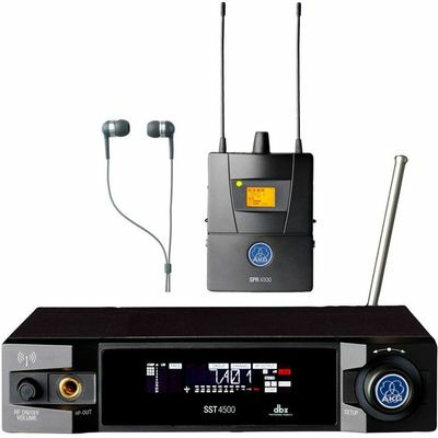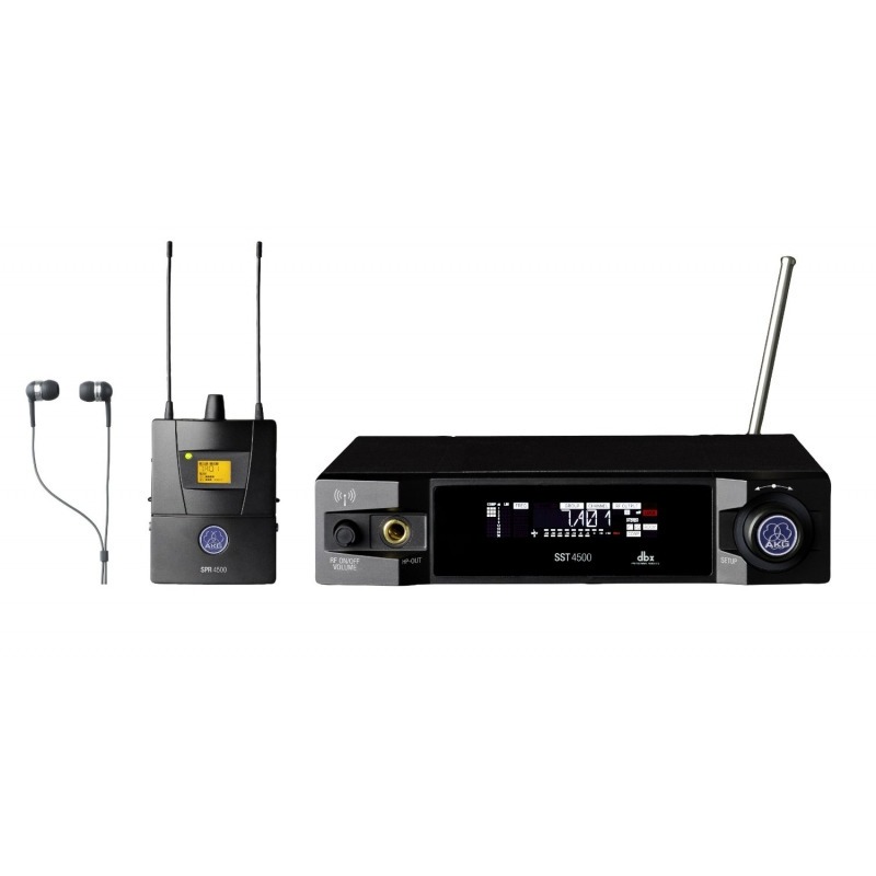 Комплект поставки | 1 х AKG SST4500 передатчик, 1 х AKG SPR4500 поясной приёмник, 1 х AKG IP2 наушники, 2 х АА батарейки, 1 х крепление для пояса, 1 х Блок питания, 1 х комплект для монтажа в рэк стойку |