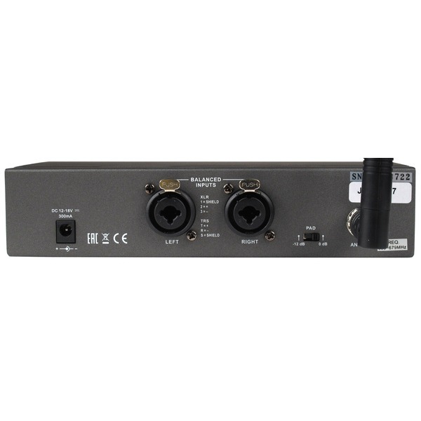 Система персонального ушного мониторинга профессионального уровня. На выбор пользователя имеется 160 настраиваемых частот. Передатчик системы имеет 2 универсальных балансных входа XLR/TRS. Есть возможность переключения режима моно/стерео – такая возможность позволяет заметно улучшить качество сигнала при наличии сильных помех или при слишком большом расстоянии приемника до передатчика. На передней панели передатчика имеется разъем для наушников с регулятором громкости. Включение и изменение громкости на приемнике одним регулятором. Возможность быстрого изменения баланса между правым и левым каналами. Стандартный разъем 3,5 мм миниджек на приемнике, позволяющий использовать любые наушники. Режим моно/стерео, мощность передатчика: 10 мВт, LCD-дисплей для отображения всей необходимой информации. Подстройка входного уровня у передатчика на задней панели, наушники с жествким нейлоновым чехлом в комплекте, 2 пары силиконовых амбушюр разных размеров. Рэковые крепления в комплекте, Удлинитель для крепления антенны на рэковом креплении (при установке в закрытый рэк). Алюминиевый кейс для транспортировки.