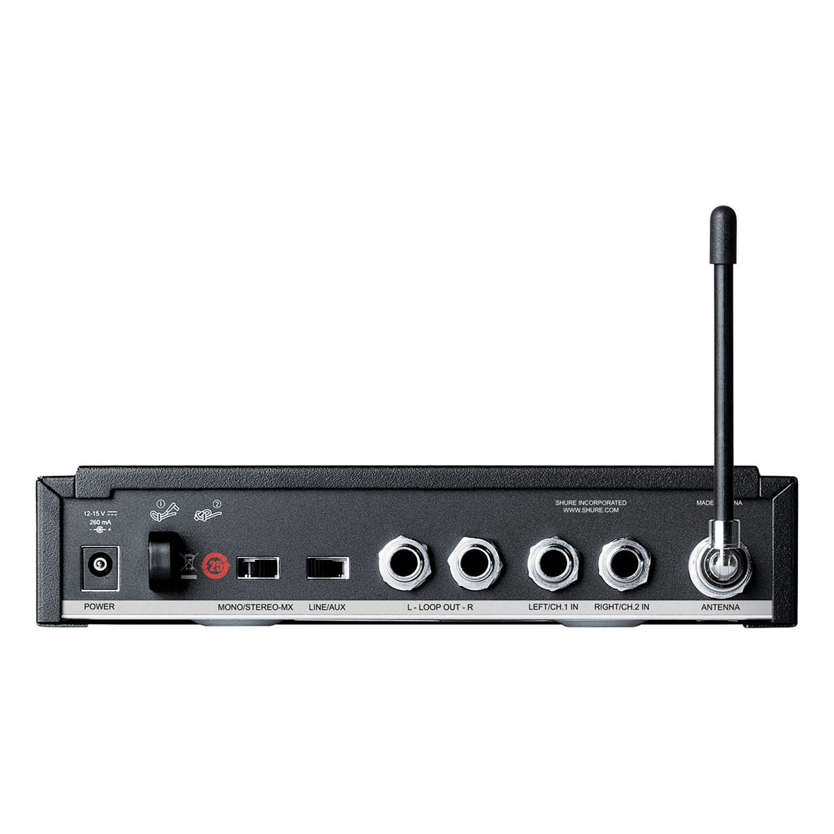 SHURE P3TER M16 – беспроводная система персонального мониторинга начального уровня. В представленный комплект входят компактный поясной приемник P3R и рэковый одноканальный передатчик P3T, а также набор для монтажа передатчика в рэк, съемная антенна, антенный адаптер, кабель BNC, блок питания, две батареи АА, чехол на молнии и руководство пользователя. Система эффективно работает при расстоянии между передатчиком и приемником до 90 метров. Поиск свободной радиочастоты и синхронизация приемника с передатчиком осуществляется быстро и просто в автоматическом режиме с помощью инфракрасного соединения. Для удобства управления и наглядности отображения настроек передатчик оснащен контрастным жидкокристаллическим экраном. Запатентованная технология Audio Reference Companding позволяет добиться идеально чистого звука с минимальным уровнем шумов и помех, без потерь и артефактов. Технология MixMode® дает возможность создавать микс, независимо регулируя уровень сигналов на двух каналах в режиме моно. Стерео режим дает возможность настройки баланса. Регулировка громкости осуществляется непосредственно на приемнике. Приемник работает от двух батарей АА 1,5 В. Современная электроника, используемая в его конструкции, позволяет непрерывно использовать приемник в течение 6 часов. Когда наушники не подключены, режим экономии электроэнергии позволяет сохранить заряд батареи. Рабочий диапазон радиочастот представленной модели – М16, от 686 МГц до 710 МГц.