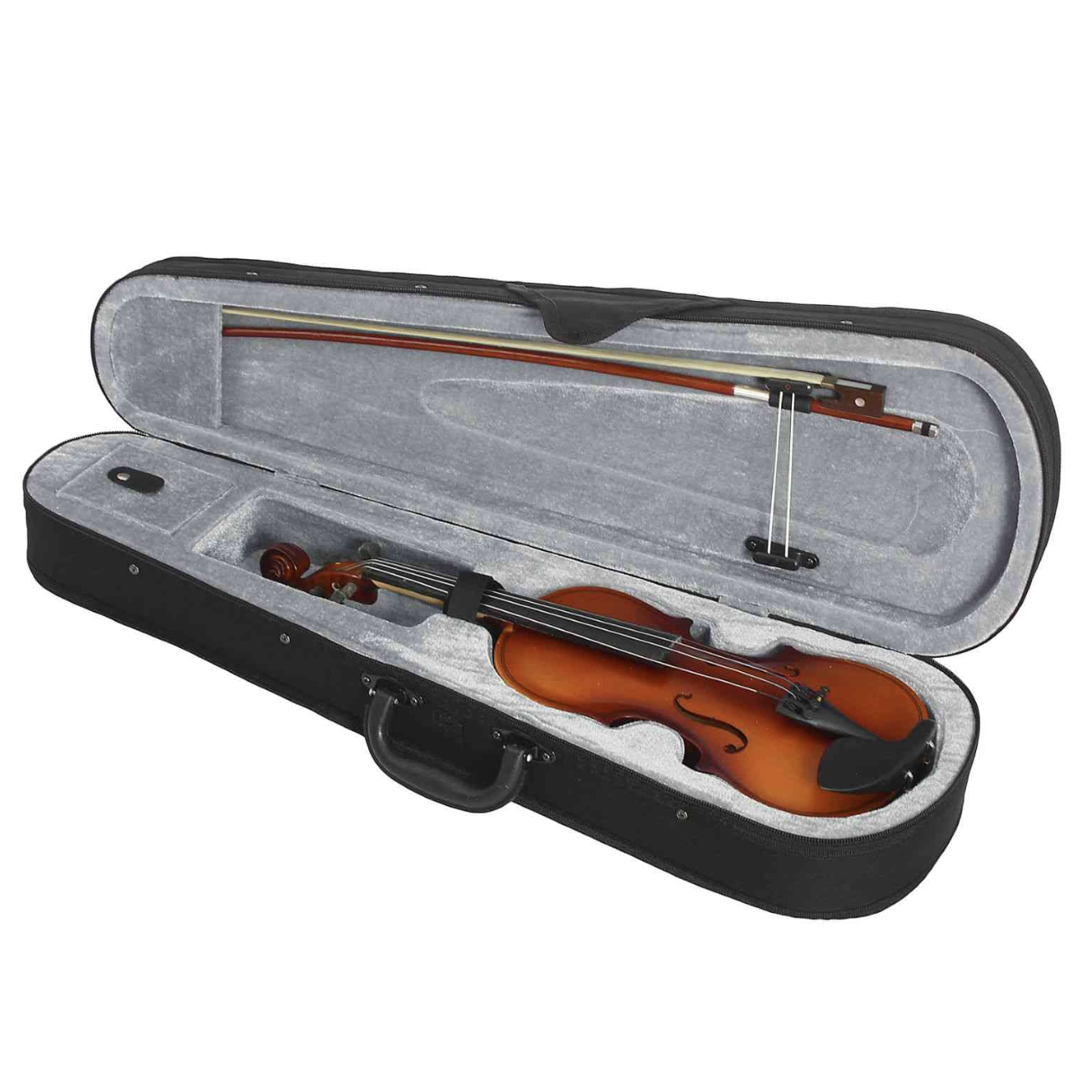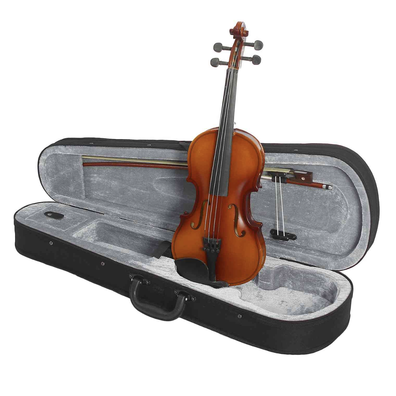 Скрипка для начинающих музыкантов. В комплект входят кейс и смычок.