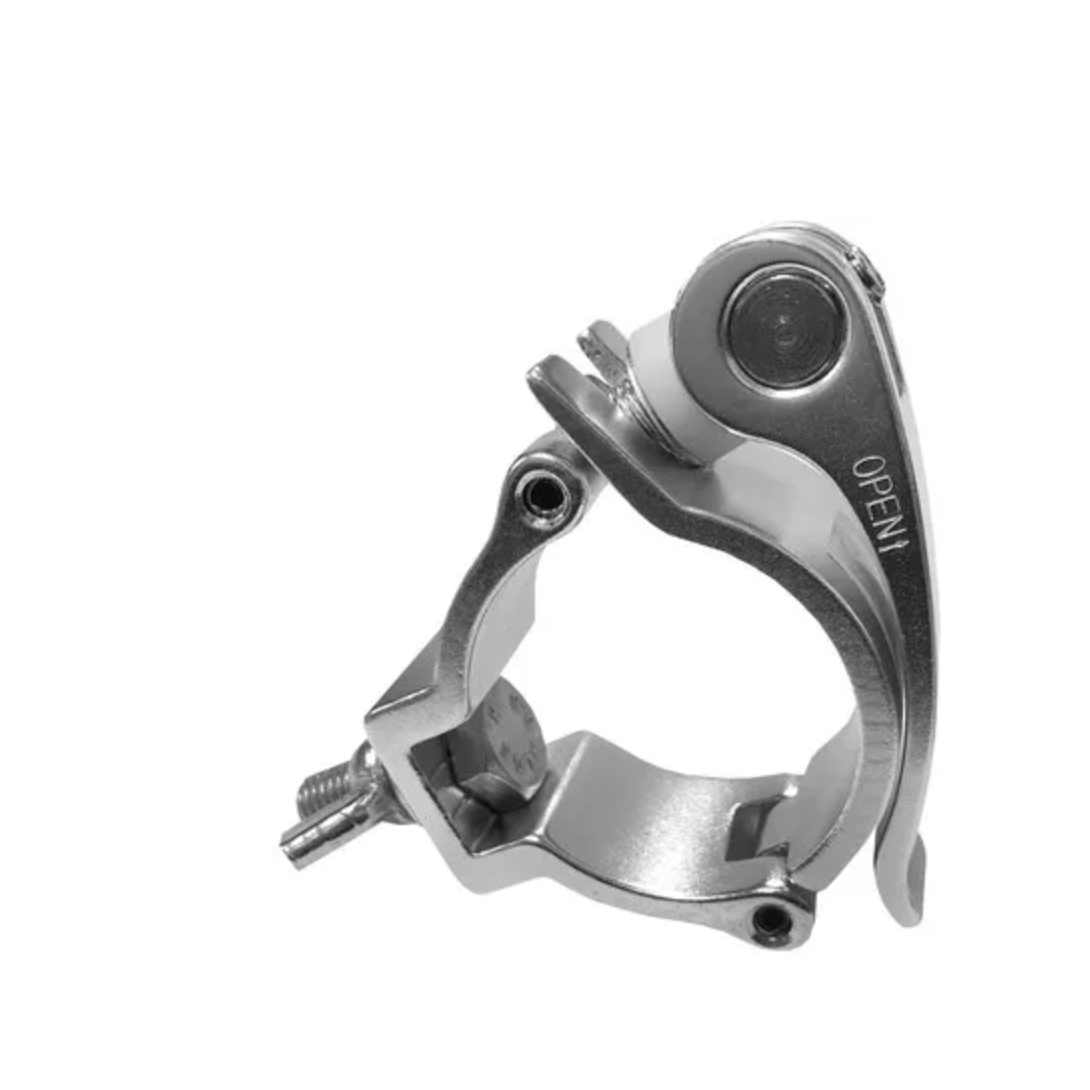 Это быстрозажимной хомут для труб диаметром 50 мм, предназначенный для крепления элементов сценических конструкций, ферм и другого оборудования. Максимальная нагрузка составляет 100 кг.