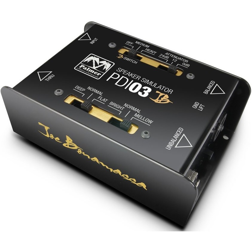 PDI 03 JB - профессиональный пассивный ди-бокс для гитарных усилителей. Балансный сигнал с частотной компенсацией подается через трансформатор на микшерный пульт или звуковую карту, при этом сам ди-бокс включается между гитарным усилителем и кабинетом или эквивалентной нагрузкой. PDI 03 JB, разработанный для концертного применения, студийной и домашней записи, помогает существенно сократить время, обычно затрачиваемое на установку и настройку микрофона. Разработанный с учётом пожеланий Джо Бонамассы, прибор позволяет получить мощный, но плотно сфокусированный звук. Фильтры симулятора PDI 03 JB тщательно настраиваются, чтобы достоверно воспроизводить частотную характеристику классических и современных громкоговорителей и кабинетов. Чувствительность входа устройства переключается для подключения усилителей мощностью до 200 Вт или линейного и инструментального уровня.