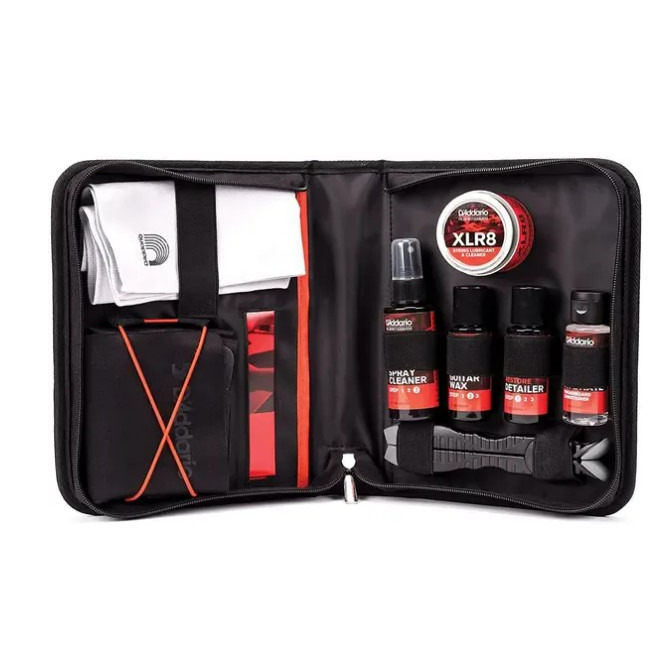 Набор для ухода за инструментами D'Addario дает вам все необходимое, чтобы ваш инструмент играл, выглядел и звучал наилучшим образом — от входящей в комплект подставки для грифа до средств для чистки и ухода, этот набор содержит все необходимое для музыкантов любого уровня мастерства и стиля.