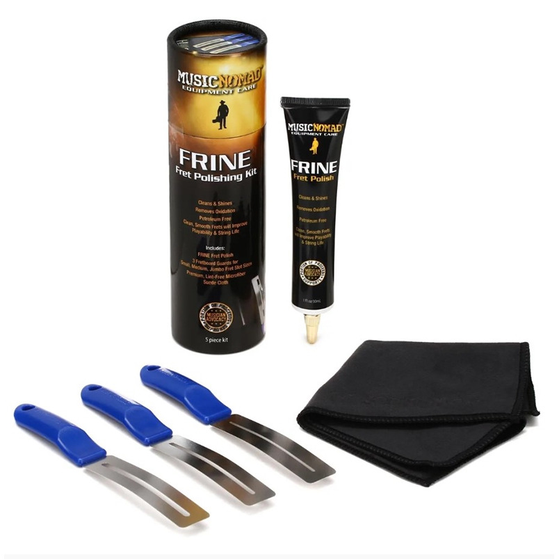 Набор для полировки ладов MusicNomad MN124 FRINE Fret Polishing Kit включает в себя все необходимые средства для того, чтобы вернуть ладам вашей гитары естественный, яркий блеск. Специальная полироль для ладов Music Nomad FRINE делает лады более гладкими, улучшая игровые характеристики вашей гитары и продлевая срок службы ваших струн. Она легко удаляет окисление и не содержит нефтепродуктов. Безопасна для любых металлических ладов.