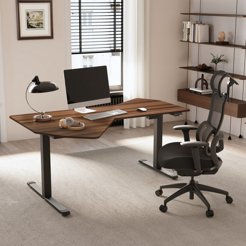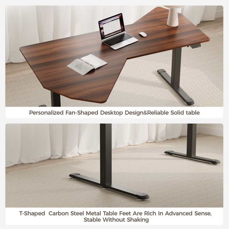 Стол компьютерный с электроприводом Eureka ERK-EDI-FS-WN (Fan shaped), орех