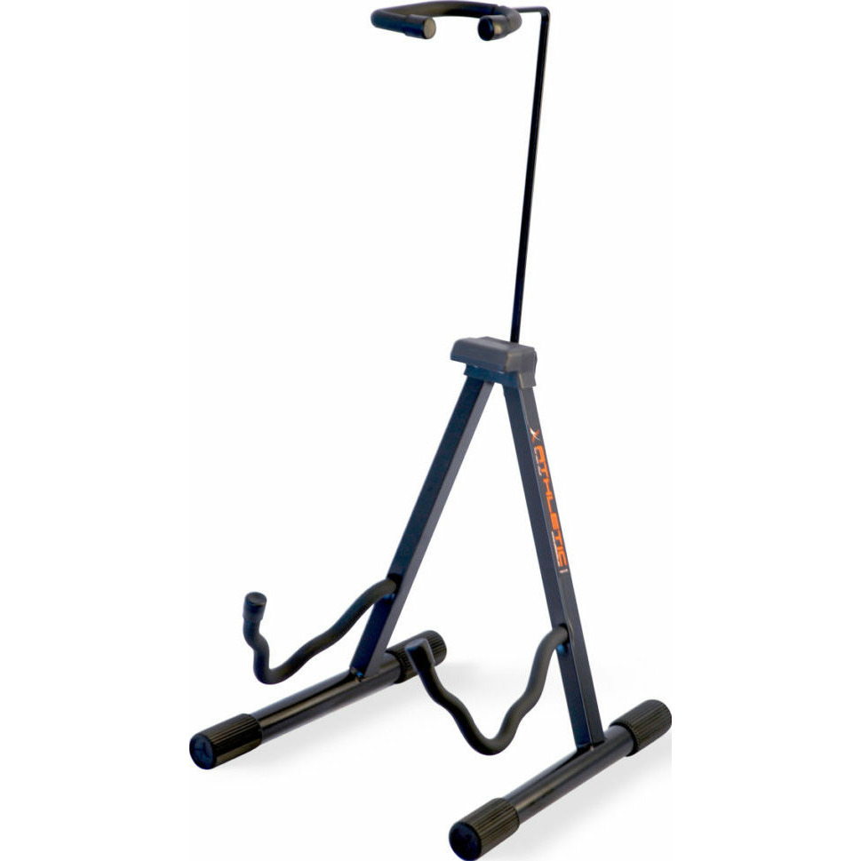 Стойка Athletic GIT-6U – лучшее решение для хранения гитары. Изменение высоты фиксатора грифа позволяет использовать ее для инструментов разных размеров. Особая форма элементов поддержки корпуса обеспечивает возможность установки как акустических, так и бас или электрогитар. Надежность и устойчивость конструкции гарантируется фасонным стальным профилем. Пружинящие оболочки поддерживающих частей позволяют предотвратить любые повреждения музыкального инструмента.