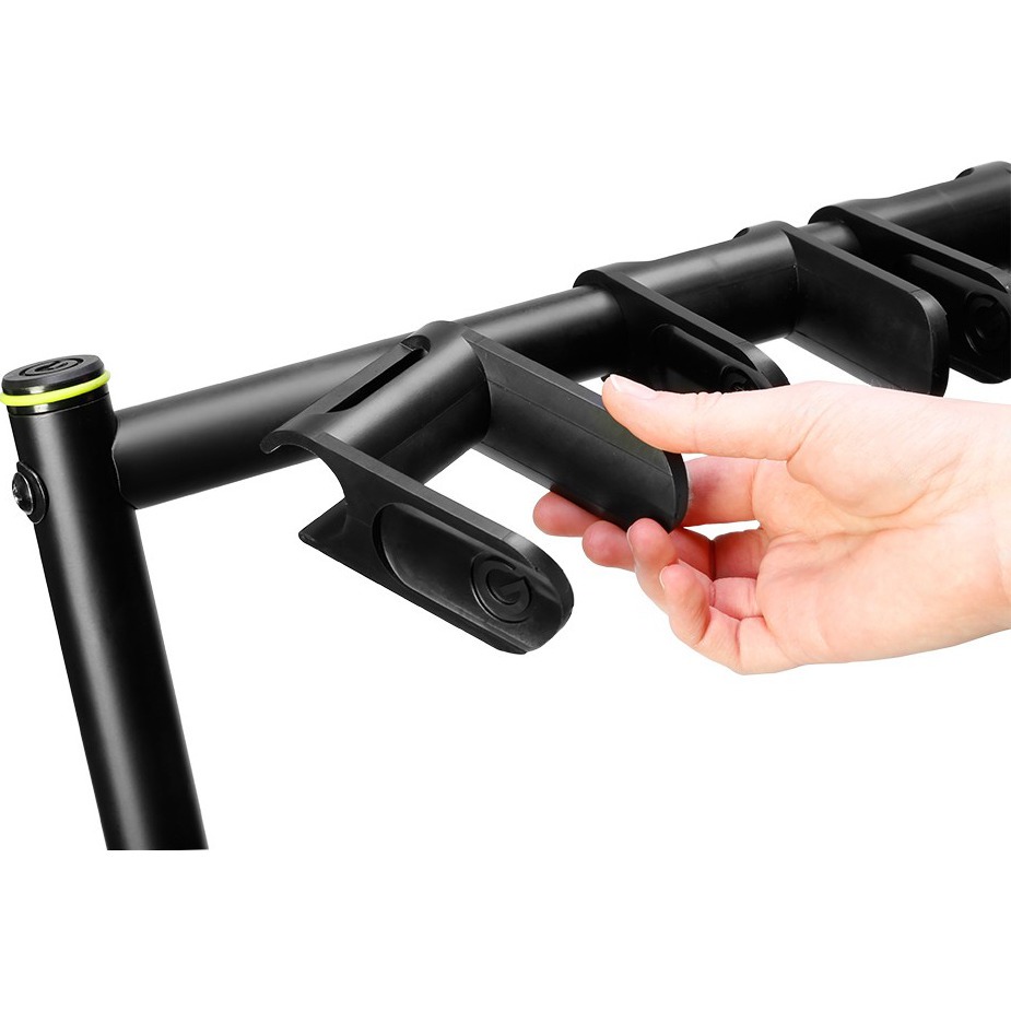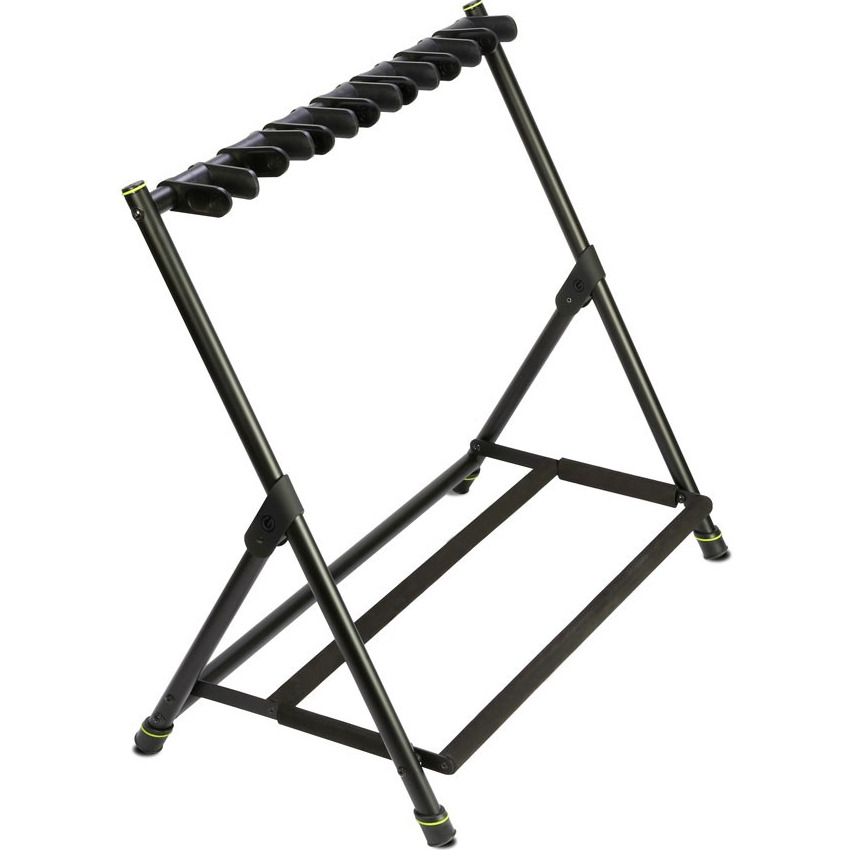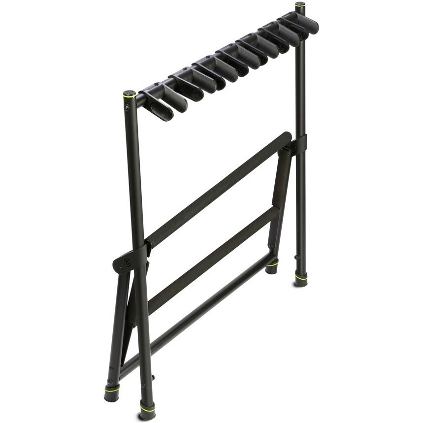 Gravity VARI-G 7 (GGSMG07) - напольная стойка для 7 гитар. Расстояние между держателями грифа можно изменять. Gravity VARI-G 7 предназначенная для всех акустических, электрических и бас-гитар, гитарная стойка Gravity Gravity VARI-G 7 вмещает сразу 7 инструментов. Они изготовлены из прочных стальных труб с черным порошковым покрытием. Регулируемые и мягкие на ощупь съемные хомуты крепко и надежно удерживают грифы. Трубки, поддерживающие корпуса гитары, покрыты специально разработанной пеной, чтобы предотвратить вмятины и царапины. Быстро настраиваемые и экономящие место, гитарные стойки этой серии складываются, для удобства транспортировки и хранения.