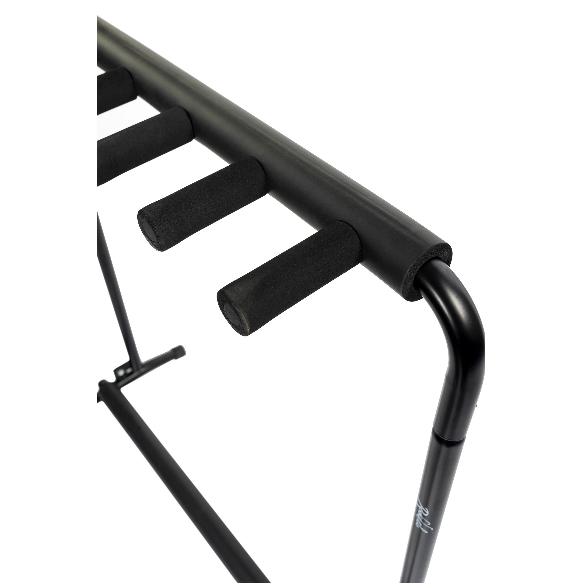 Rockdale 34087 напольная стойка на 7 гитар. Данная модель изготовлена из высококачественного металла. Rockdale 34087 имеет разделитель грифов. Стойка выполнена в черном цвете.