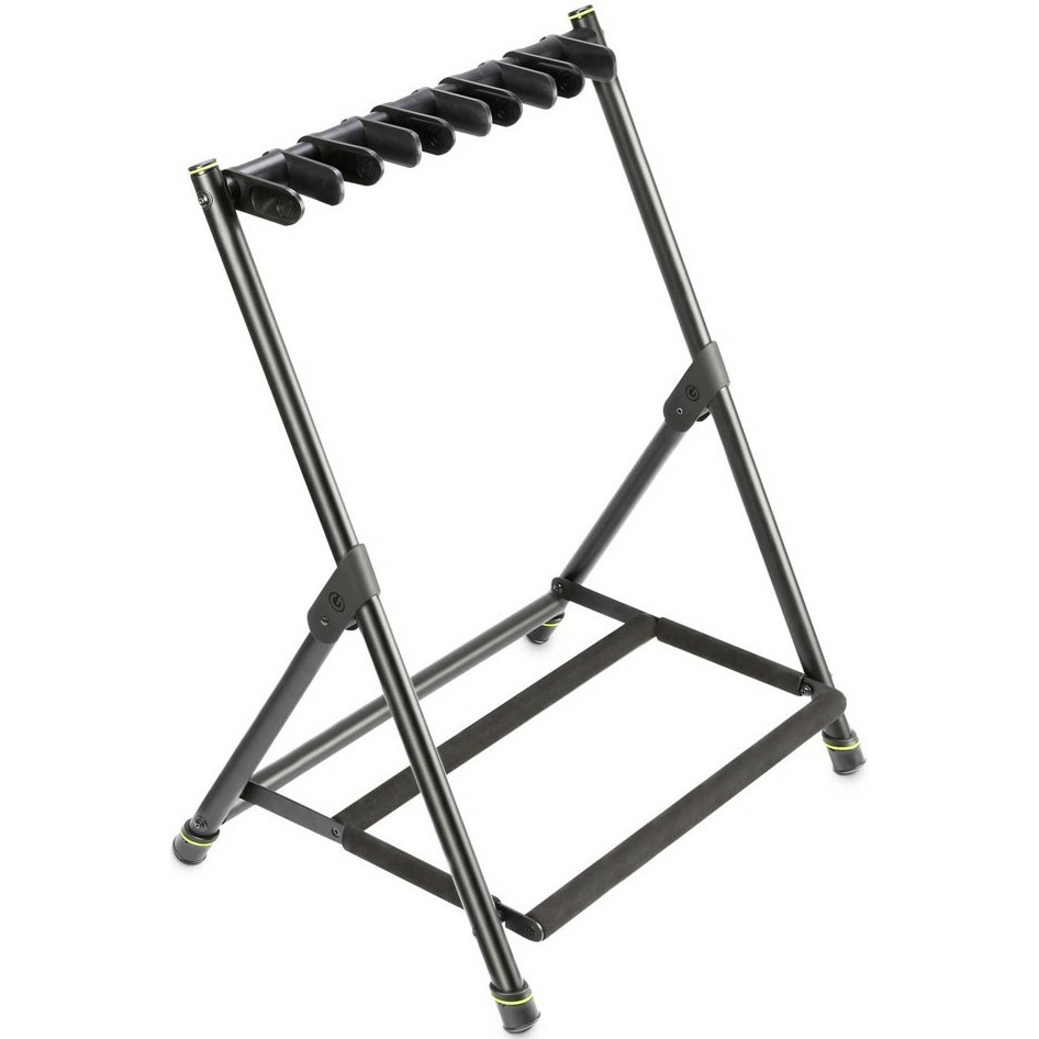 GGSMG05 стойки предназначенные для всех акустических, электрических и бас-гитар, стойки для гитары Gravity доступны в четырех версиях с 3, 5, 7 или 9 инструментами. Они изготовлены из прочных стальных труб с черным порошковым покрытием. Крепко и надежно удерживая шейки, регулируемые, на ощупь хомуты мягкие и съемные. Рельсы, поддерживающие корпуса гитар, покрыты специально разработанной пеной, чтобы предотвратить вмятины и царапины. Быстрые в настройке и экономящие место, гитарные стойки Gravity складываются для удобства транспортировки и хранения.