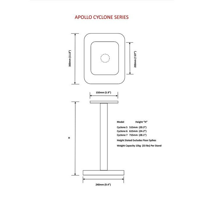 Стойки для акустических систем серии Apollo Cyclone позиционируются производителем, как более доступные, по сравнению с традиционными моделями производства Atacama. Тем не менее, в конструкции этих стоек использованы проверенные технологии британской компании, неоднократно получавшие различные награды международного экспертного сообщества.