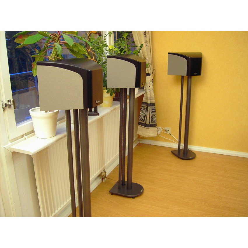 Маленькие стальные трубы (диаметр 28 мм, толщина стенки 1,5 мм) с торцов заварены, и засыпку можно осуществлять разве что через резьбовое отверстие. Скрепляется вся конструкция мощными винтами М8. Для сборки требуются большие отвертки—и плоская, и крестовая (в комплекте инструмента нет). Верхняя полка Atacama Nexus 10i выполнена из 4-миллиметровой стальной пластины, нижняя — штампованная из 2-мм стали. Снизу — два короба с резьбовыми отверстиями для ножек-шипов. Кстати, для затяжки контргаек также придется самому поискать ключ. Шипы имеют длинную резьбовую часть, но вкручиваются не полностью, упираясь в пластину основания. В результате минимальное расстояние от пола до низа основания составляет около 25 мм. Для верхней полки (столик под колонку) не преду- смотрено никаких прокладок или шипов. Просто ставить колонку без прокладок мы бы не советовали, поэтому решать сию проблему можно с помощью самодельных или покупных прокладок. Стойка может служить и в бюджетной, и в роскошной стереосистеме. В последнем случае, конечно, желательно использовать балластную засыпку (удобнее — дробь).
