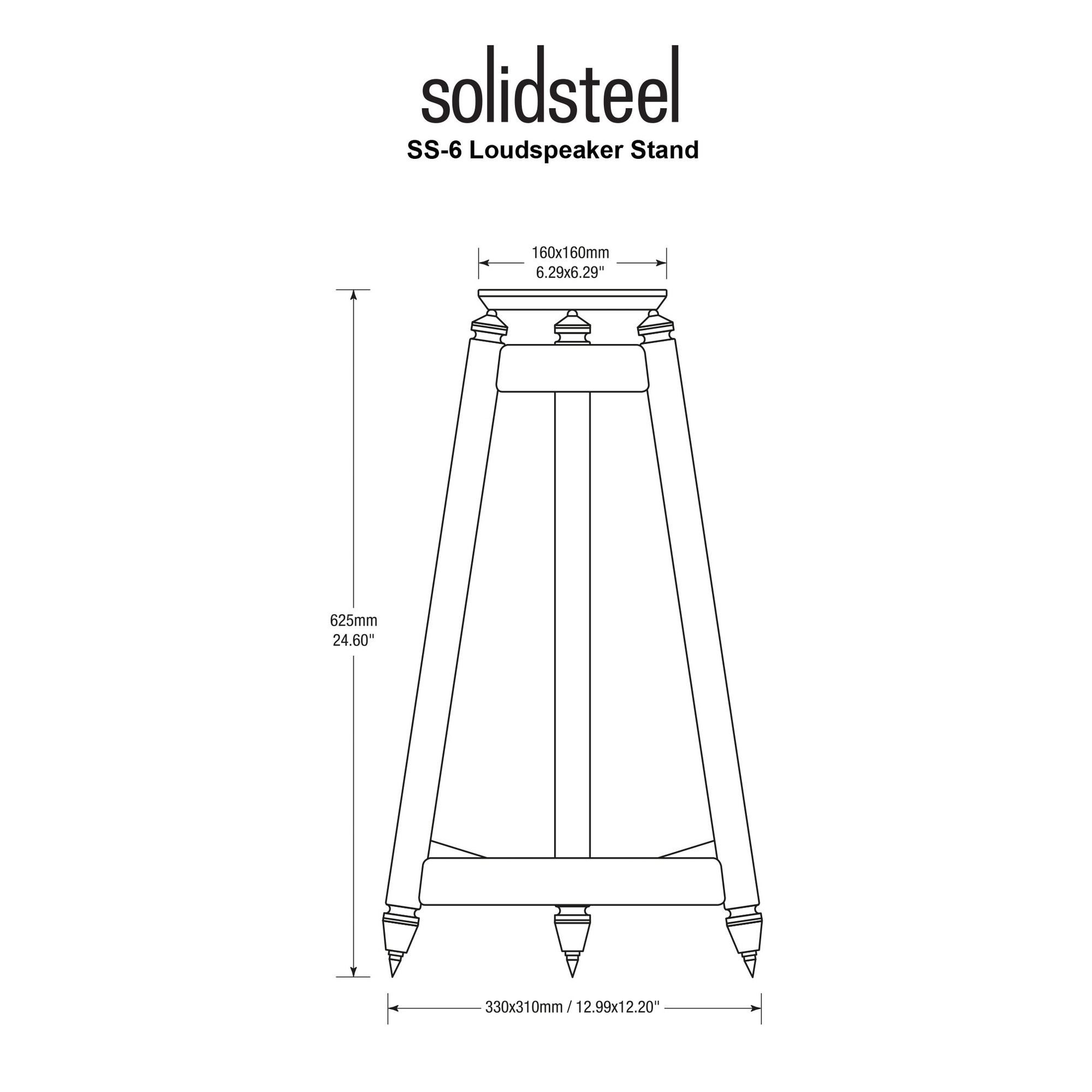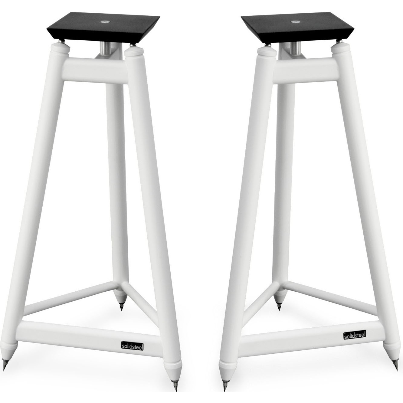 Solidsteel SS-6 представляет собой стойку для полочных (мониторных) акустических систем. Она имеет прочную конструкцию, которая способна выдержать большой вес устройств. Модель имеет 3 трубчатые опоры, увенчанные выпуклыми стальными наконечниками, в которых для развязки шасси и полки используются прецизионные шарикоподшипники. Сняв шипы, можно заполнить трубы свинцом или песком для создания большей устойчивости и снижения вибрации. Для надежного крепления корпусов колонок к полкам из MDF в комплекте с стойками прилагаются двухсторонние липучки “Blue-Tak”.
