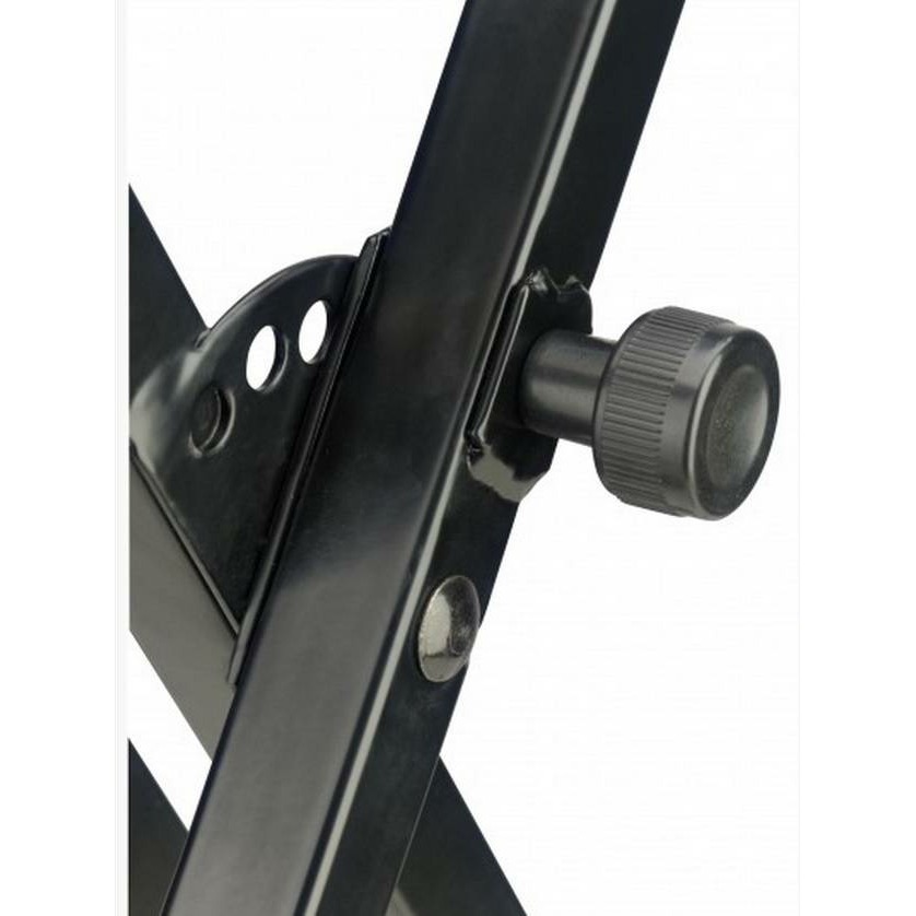 Прочная полностью металлическая конструкция.Складывается в плоскую конструкцию. Регулировка высоты: 66 – 99 см. Максимальная нагрузка: 40 кг. Вес: 4,6 кг. Цвет: черный.