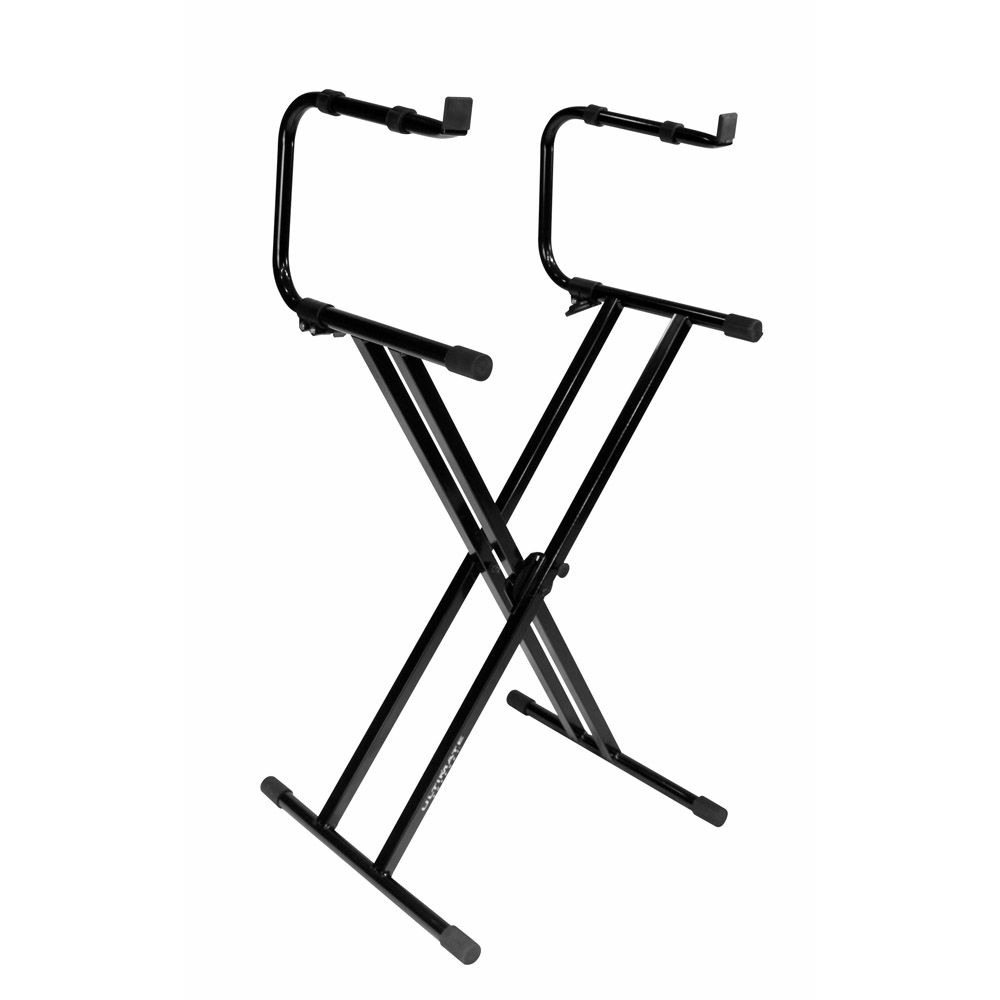 Ultimate IQ-2200 – клавишная усиленная Х-образная стойка для двух инструментов. Изготовлена из прочного и качественного материала – стального профиля. Обладает привлекательным дизайном, окрашена в черный цвет. Фирменная система “Memory Lock” дает возможность выбрать удобную высоту для работы с инструментом как сидя, так и стоя. Диапазон высоты от 673 до 914 мм. Верхние и нижние основания оснащены эластичными насадками. Это позволяет удерживать инструменты, не давая им соскользнуть, а также придает устойчивость на любых поверхностях. Складывается для комфортной и удобной транспортировки.