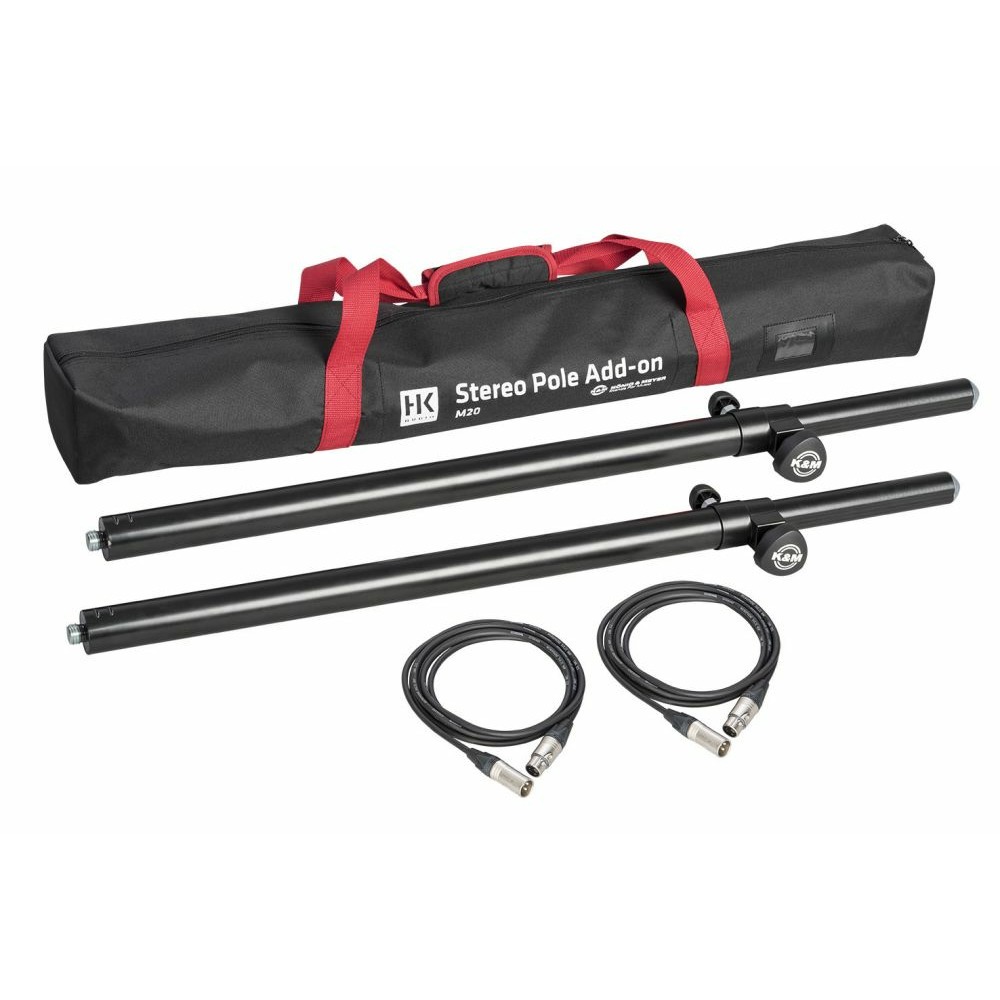 HK AUDIO Stereo Pole Add On M20 – набор аксессуаров для оборудования линейки PR:O. В комплект входят две стойки M20 от знаменитого немецкого производителя König & Meyer, специально разработанные для монтажа акустических систем HK AUDIO. Также в наборе два высококачественных кабеля с разъемами XLR для подключения и практичный чехол для хранения и транспортировки. Стойки - прямые, имеют регулируемую высоту, настраиваемую от 90,5 см до 104,5 см, выполнены из прочного металла. Эргономичная конструкция позволяет быстро и надежно зафиксировать динамики на нужной высоте. Длина поставляемых в наборе кабелей – 3 метра. Стойки, кабели и чехол – черного цвета. Сумка оснащена прочными двойными ручками красного цвета с мягкой накладкой для удобства переноски.
