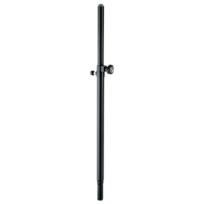 Раздвижная соединительная стойка для акустических музыкальных систем очень проста в пользовании. Это устройство имеет пружинный фиксирующий винт с болтом безопасности, что позволяет держать длину. Длину раздвижной системы можно менять. Даже в полностью разложенном состоянии и установленном микрофоне стойка практически не сгибается. Она выполнена из стали и имеет черное покрытие. Зажимы секций делают проще подбор длины стойки. Держатель оснащен двумя смягчителями для рук, обеспечивающими надежный и удобный захват. На ножках стойки для музыкального оборудования находятся резиновые колпаки, что позволяет гарантировать стойкость на довольно скользком покрытии.