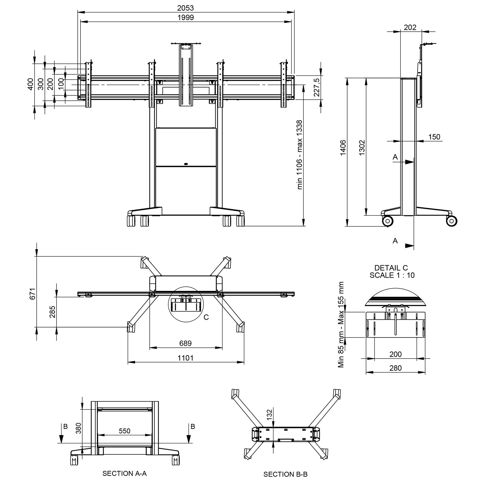 - 2 х 55 "(максимальная горизонтальная VESA 600 мм)